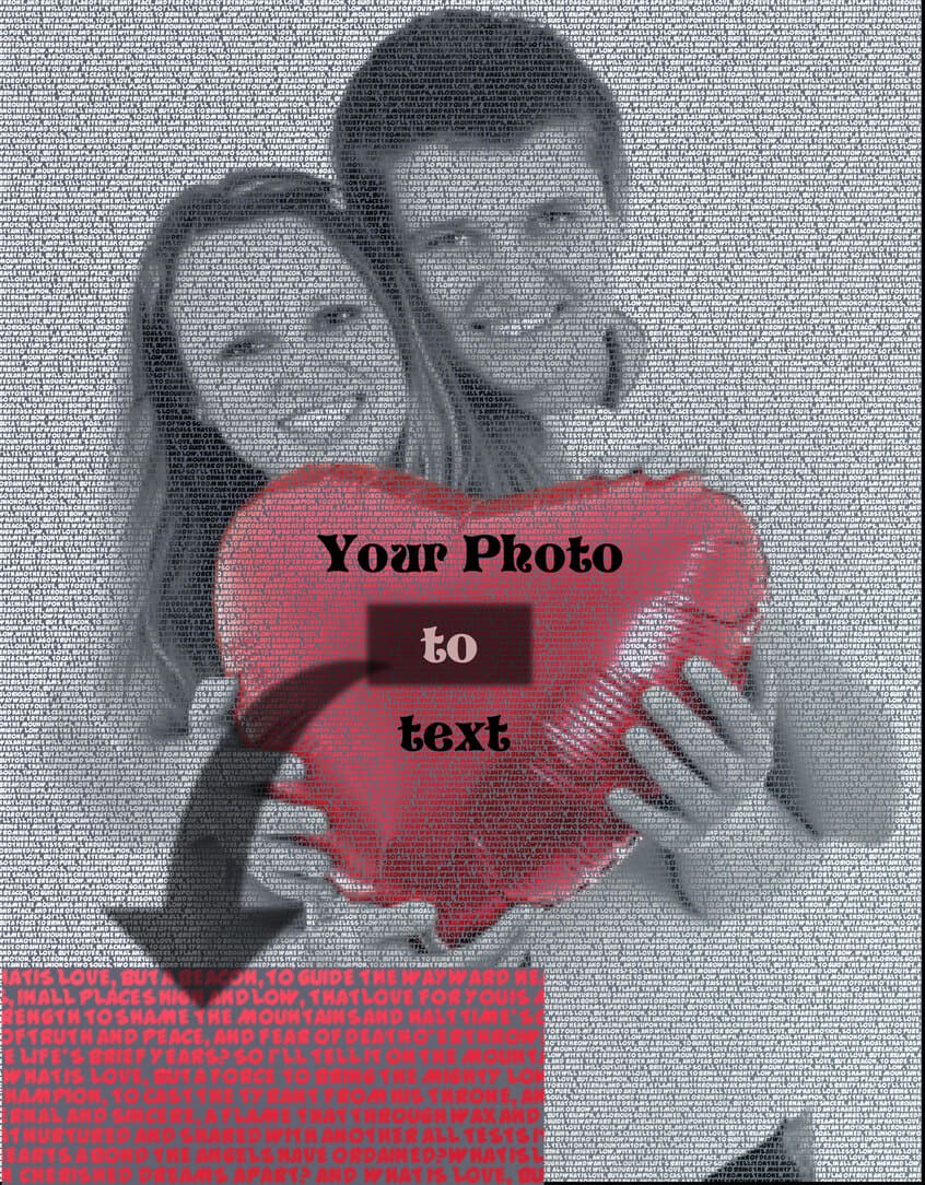 One great way to give a gift that will last for generations is to give a Photo to Text masterpiece. Photo to Text gifts are a unique gift idea that allow you to make a lasting impression and give a gift that lets the individual know how much they mean to you. It is a one of a kind memory that you are creating to give to someone who has left their imprint on your heart.