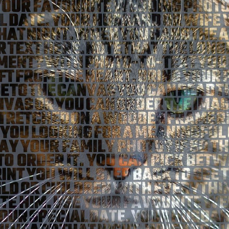 Make image with text by designing your intimate moments and pictures made by words. Turn your precious memories into unique personalized photo gifts and one-of-a-kind keepsakes that will be treasured forever. Celebrate your family memories and turn words into pictures. Visit photo-to-text.com now & order your pictures made by words.