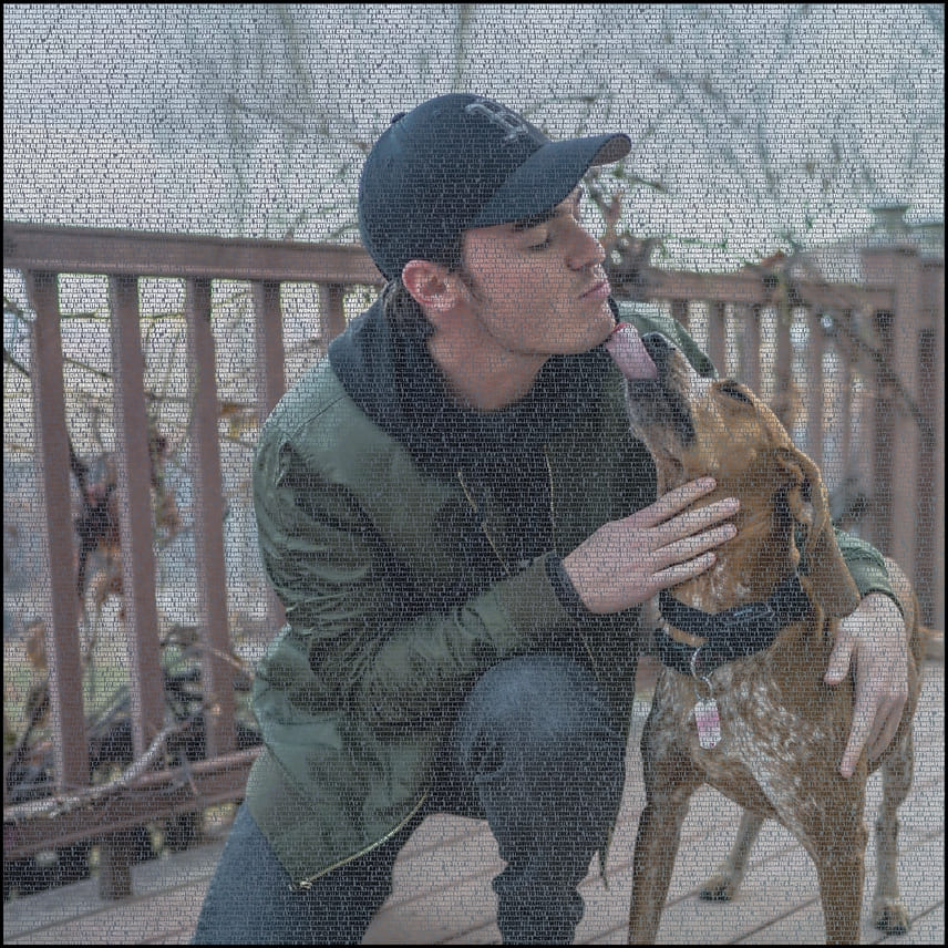 So, how do you create these photos made up with text? First, you pick a photo and then save it to your computer. There are several ways that you can do this quickly and easily. Next, you will need the text or list of words that you want to use. For instance, you might use words like: hard-working, dedicated, family, loving, kind and so on. If you want to use it for a graduate you might use: successful, smart and words pertaining to their new career.
